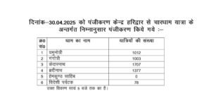 चारधाम की यात्रा आध्यात्मिक रफ्तार पकड़ रही है। आपको बता दे कि हरिद्वार से चारों धामों के लिए 30 अप्रैल कुल 5177 तीर्थयात्रियों ने रजिस्ट्रेशन कराया। बाबा केदारनाथ के दर्शनों के लिए 1707 श्रद्धालु, बद्रीनाथ धाम के लिए 1377 भक्त, गंगोत्री धाम के लिए 1003 और यमुनोत्री धाम के लिए 1012 यात्रियों ने अपना पंजीकरण करवाया सबसे खास बात ये रही कि आज की रजिस्ट्रेशन लिस्ट में 78 विदेशी श्रद्धालु भी शामिल रहे, जो भारत की आध्यात्मिक धरोहर को महसूस करने पहुंचे हैं।