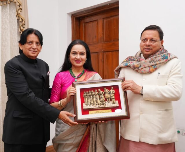 सीएम धामी से मुख्यमंत्री आवास में बॉलीवुड की अभिनेत्री पद्मिनी कोल्हापुरे ने की शिष्टाचार भेंट