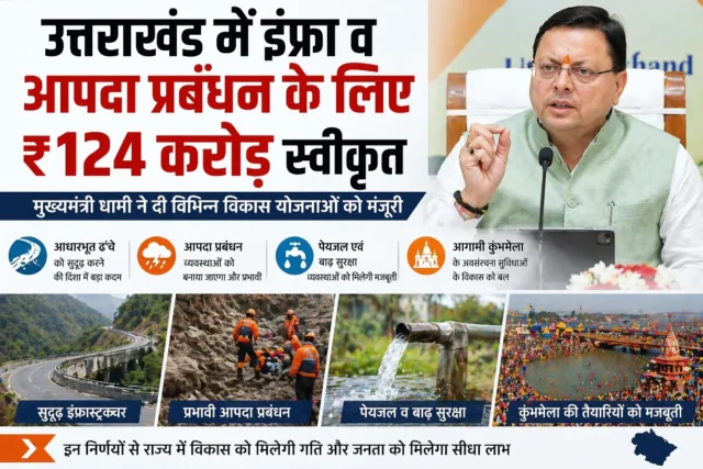 मुख्यमंत्री पुष्कर सिंह धामी ने विभिन्न विकास योजनाओं के लिए ₹ 124 करोड़ का अनुमोदन प्रदान किया है। इन निर्णयों से राज्य में आधारभूत ढांचे को सुदृढ़ करने, आपदा प्रबंधन को प्रभावी बनाने तथा पेयजल एवं बाढ़ सुरक्षा से संबंधित व्यवस्थाओं को सशक्त करने के साथ ही आगामी कुम्भमेला के अवस्थापना सुविधाओ के विकास में मदद मिलेगी।