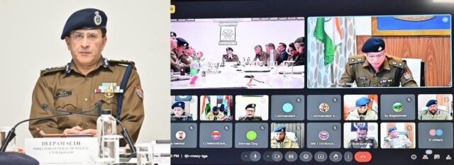 आज दिनांक 18 जनवरी को दीपम सेठ, पुलिस महानिदेशक की अध्यक्षता में 38वें राष्ट्रीय खेलों के आयोजन की तैयारियों के दृष्टिगत गढ़वाल व कुमाऊँ परिक्षेत्र सहित समस्त जनपद प्रभारियों, सेनानायकों एवं सम्बन्धित ईवेन्ट मैनेजमेन्ट एजेन्सियों के साथ त्रुटिरहित सुरक्षा व्यवस्था, फोर्स व्यस्थापन प्लान, यातायात प्लान, पार्किंग, सुरक्षा व्यवस्था हेतु आवश्यक उपकरण के सम्बन्ध में वीडियो कान्फ्रेसिंग के माध्यम से एक उच्च स्तरीय समीक्षा गोष्ठी आयोजित की गयी।
