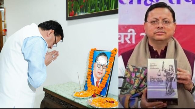उत्तराखंड के मुख्यमंत्री पुष्कर सिंह धामी आज हरिद्वार दौरे पर पहुँचे। इस दौरान सीएम मीडिया से रूबरू हुए। मीडिया से बातचीत करते सीएम धामी ने कहा मैं सबसे पहले भारत रत्न डॉक्टर भीमराव अंबेडकर जी के जन्मदिवस पर सभी को बधाई देता हूं। उन्होंने कहां कि बाबा साहेब भीमराव अंबेडकर ने देश को ऐसा संविधान बनाकर दिया जिसमें सामान्य हो सबको गौरव से जीने का अधिकार हो बराबरी का अधिकार हो और अनेक काम जो बाबा साहब की सोच में थे जो उन्होंने भारत के संविधान में जिसका प्रावधान किया आज प्रधानमंत्री नरेंद्र मोदी जी के नेतृत्व में वह साकार हो रहे हैं जिन गरीबों की दलितों की वंचितों की सोचितों की सोच बाबा साहब की आगे बढ़ाने की थी उन सभी पर आज हमारे देश के सभी प्रधानमंत्री मोदी जी के नेतृत्व में आगे बढ़ रहे हैं। सीएम ने कहा कि आज समानता का अधिकार मिल रहा है उत्तराखंड राज्य में बाबा साहब ने जो भारत के संविधान के अनुच्छेद 44 में समान नागरिक संहिता का प्रावधान किया था इसकी शुरुआत देवभूमि उत्तराखंड से हो गई है और यह बाबा साहब को सच्ची श्रद्धांजलि है।