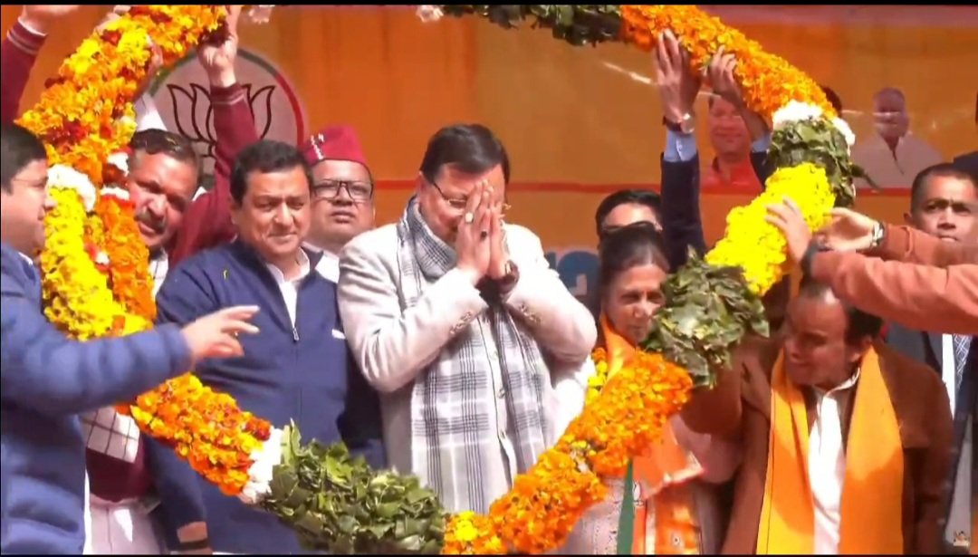 धाकड़ धामी के रोड-शो में हजारों की संख्या में उमड़े लोग, दिया अपना समर्थन