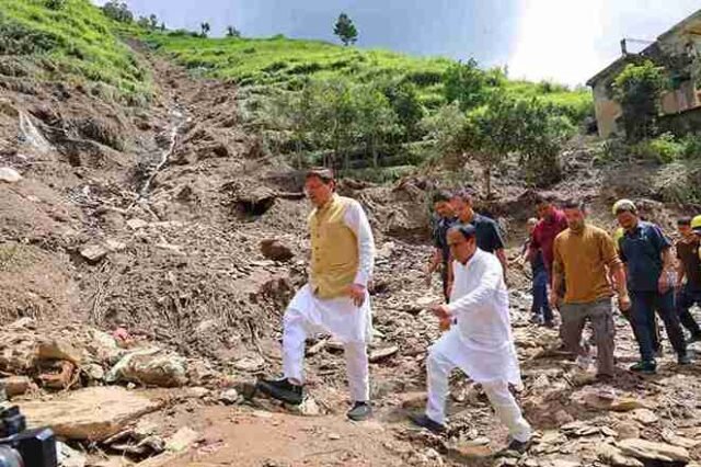मुख्यमंत्री पुष्कर सिंह धामी ने गुरुवार को पौड़ी जनपद के आपदाग्रस्त क्षेत्र सैंजी का स्थलीय निरीक्षण किया। इस दौरान उन्होंने आपदा प्रभावित ग्रामीणों से उनका हालचाल जाना एवं आपदा से हुए नुकसान के बारे में जानकारी ली। उन्होंने प्रभावितों को आश्वस्त किया कि राज्य सरकार हर परिस्थिति में प्रभावितों के साथ खड़ी हैं। उन्होंने जिलाधिकारी को निर्देश दिये कि आपदा प्रभावितों को राहत पहुंचाने में किसी प्रकार की कमी न हो। इससे पूर्व उन्होंने हेलीकाप्टर से थलीसैंण तहसील के बांकुड़ा सहित अन्य आपदा प्रभावित क्षेत्रों का हवाई सर्वे भी किया।