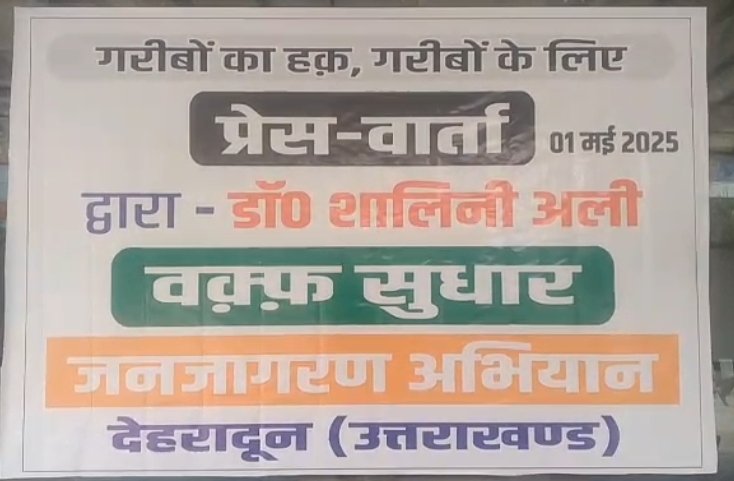 देश की जानी मानी समाजसेवी एवं इस्लामिक विचारक सुधारक डॉ. शालिनी अली ने देहरादून में आयोजित एक प्रभावशाली प्रेस कॉन्फ्रेंस में वक्फ संशोधन विधेयक 2024 को लेकर फैले भ्रम और अफवाहों को सिरे से खारिज करते हुए इसे ऐतिहासिक और समाजहित में लिया गया निर्णय बताया। उन्होंने इस संवाद के माध्यम से वक्फ पर एक व्यापक जनजागरण अभियान की शुरुआत की, जिसका उद्देश्य मुस्लिम समाज में जिम्मेदारी, पारदर्शिता और महिला नेतृत्व की भूमिका को मजबूत करना है।