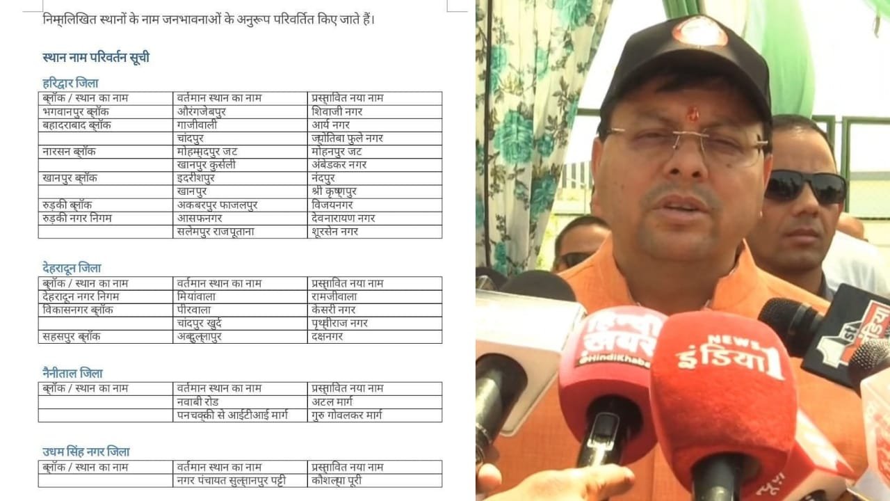 ख़बर देहरादून से हैं जहां सूबे के पुष्कर सिंह धामी सरकार ने 31 मार्च 2025 को बड़ा फैसला लेते हुए उत्तराखंड राज्य के चार अलग अलग जिलों में कई जगहों के नाम बदल दिए। सीएम पुष्कर सिंह धामी के इस फैसले के बाद उत्तराखंड में एक नई बहस शुरू हो गई है। हालांकि आपको बता दे कि मुख्यमंत्री के इस फैसले कई जगहों पर सरहाना करते हुए फैसले का स्वागत किया जा रहा है, तो कोई इस निर्णय को बीजेपी की नौटंकी बता रहा है। आपको बता दें कि 31 मार्च यानी सोमवार देर शाम धामी सरकार की ओर से एक आदेश जारी हुआ। जिसके बाद हरिद्वार, नैनीताल, उधम सिंह नगर और देहरादून जिले में स्थित करीब 17 जगहों के नाम बदल दिए गए। सरकार ने जो नाम बदले हैं, वो या तो मुगल शासकों को नाम पर थे, या फिर विशेष समुदाय के लोगों के नाम पर थे।