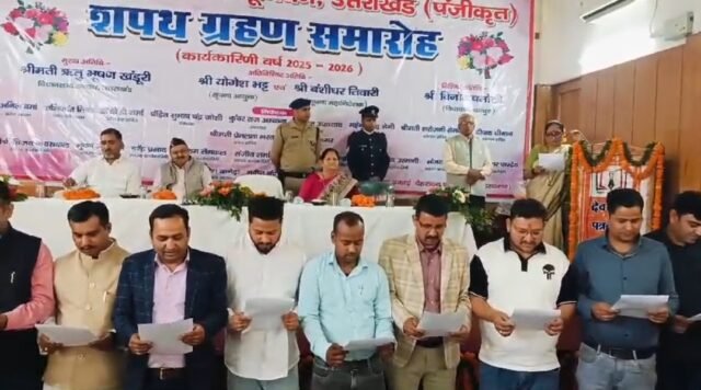 राजधानी देहरादून के उत्तरांचल प्रेस क्लब में देव भूमि पत्रकार यूनियन का शपथ ग्रहण एवं अभिनंदन समारोह का आयोजन किया गया। जिसमें मुख्य अतिथि के रूप में विधानसभा अध्यक्ष ऋतु खंडूरी भूषण ने शिरकत की कार्यक्रम में सूचना आयुक्त योगेश भट्ट और सूचना महानिदेशक बंशीधर तिवारी ने भी अपनी मौजूदगी दर्ज कराई। कार्यक्रम की शुरुआत दीप प्रज्वलित करके की गई। जिसमें प्रदेश कार्यकारिणी और जिला इकाई के सभी सदस्यों को विधानसभा अध्यक्ष ऋतु खंडूरी के द्वारा शपथ दिलाई गई।