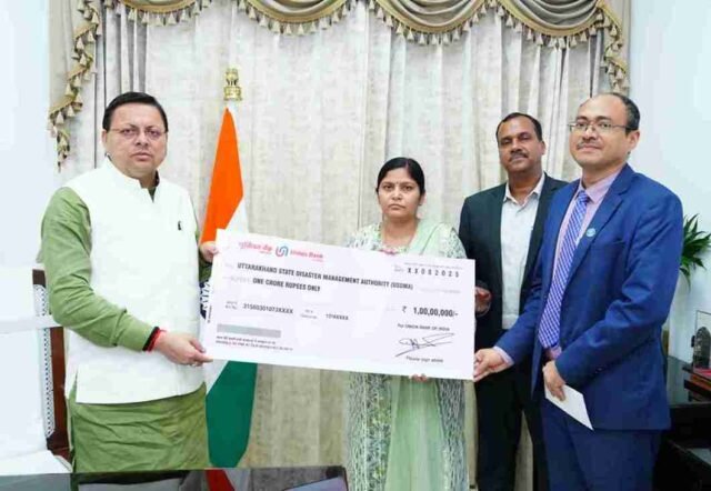 मुख्यमंत्री पुष्कर सिंह धामी से बुधवार को मुख्यमंत्री आवास में यूनियन बैंक ऑफ़ इंडिया के प्रतिनिधिमंडल ने भेंट की। इस दौरान यूनियन बैंक ऑफ़ इंडिया द्वारा उत्तरकाशी जिले के धराली एवं हर्षिल क्षेत्र में आई आपदा के राहत कार्यों के लिए रू 1 करोड़ की धनराशि का योगदान दिया गया।